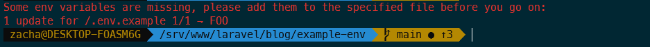 Also in reverse, if now a other team members pulls the lates code (he will not have the FOO env variable set), he gets notified, that there is a new env variable and he/she should define it in the .env.